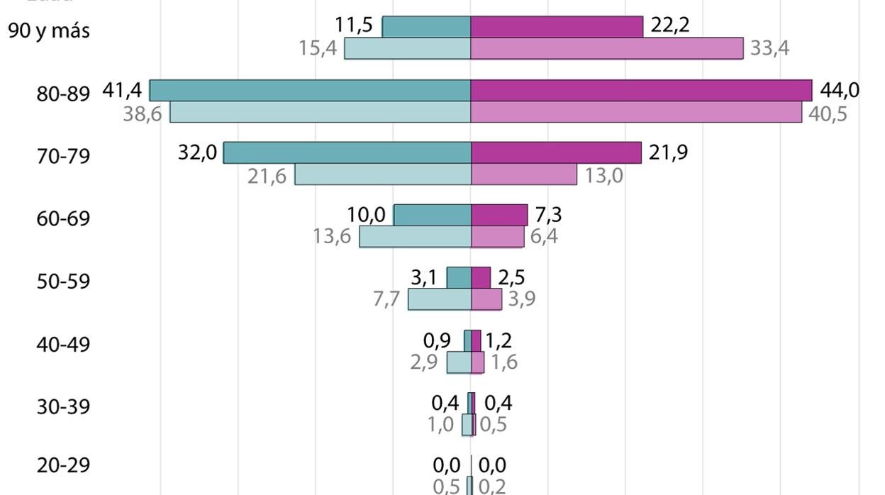 Nadie muestra nunca la estadística de muertes por edades que sería la forma ideal y seria de ir vacunando, o sea empezar por los más expuestos a morir que al virus mismo.A diferencia de ellos, los ancianos o no tanto desde hace 1 año sienten "La espada de Damocles" pendiente sobre el coco, muchos muy atemorizados tanto de morir como de no poder abrazar seres queridos y encima con la culpa de que si se reune es quién provoca su propia muerte y encima mata a otros.